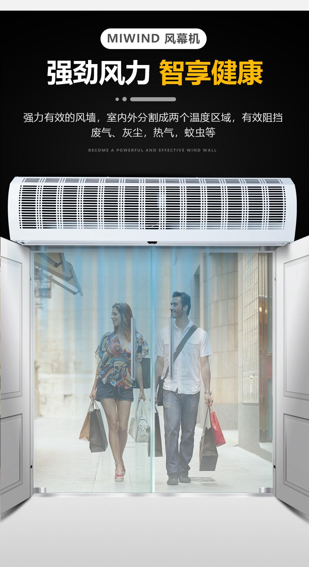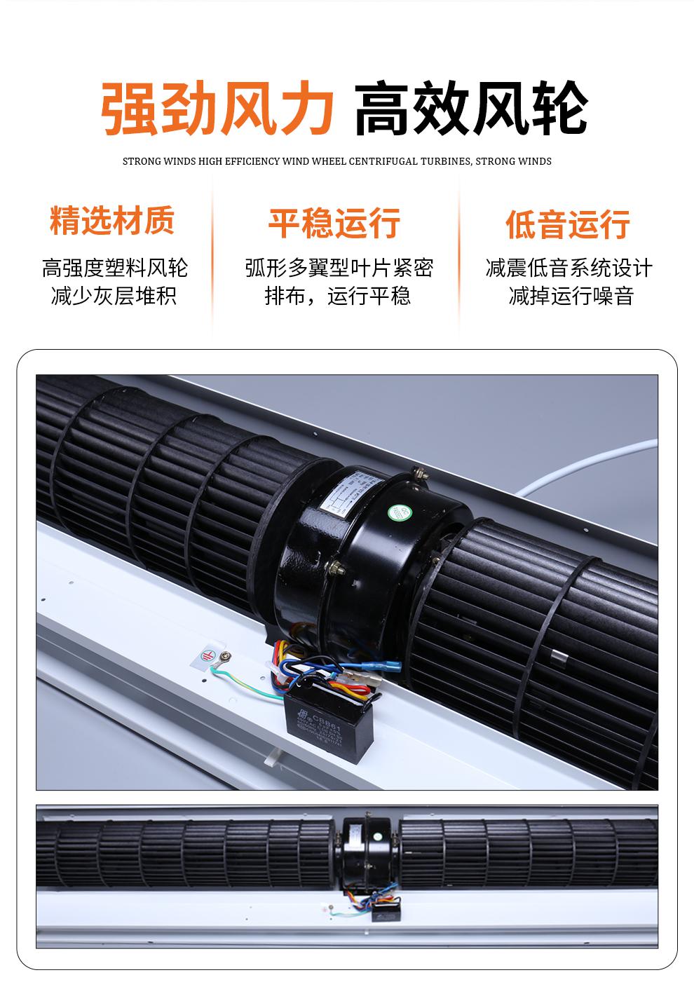2、貫流式空氣幕(風(fēng)幕機(jī))是采用單相電容運(yùn)行式電動機(jī)驅(qū)動,帶動外型勻稱的ABS塑料風(fēng)輪產(chǎn)生分布均勻的幕式氣流。